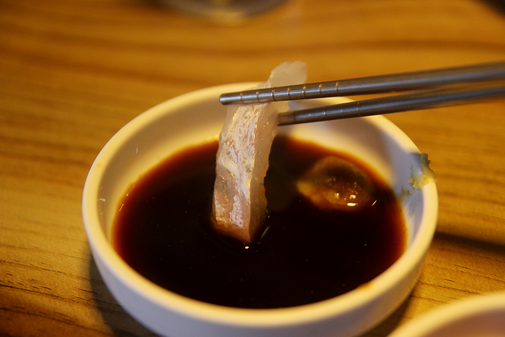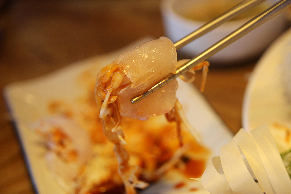 디테일한 비쥬얼 볼까요?! 하나같이 너무 먹음직 스럽죠? 윤기 좔좔 흐르는데.. 저 막 심장 떨렸잖아요!! 보는 순간 엄청 맛있게 먹을 자신 있다고- 핵 신났습니다 :) 뭔가 회의 결 하나하나가 살아 있는 느낌. 거기다가 드셔보시면 굉장히 쫀득해서 "뭐야? 숙성회도 아닌데 왜이렇게 맛있어?" 하는 생각을 가지게 된다는 사실! 아무튼, 대단한 맛입니다!
