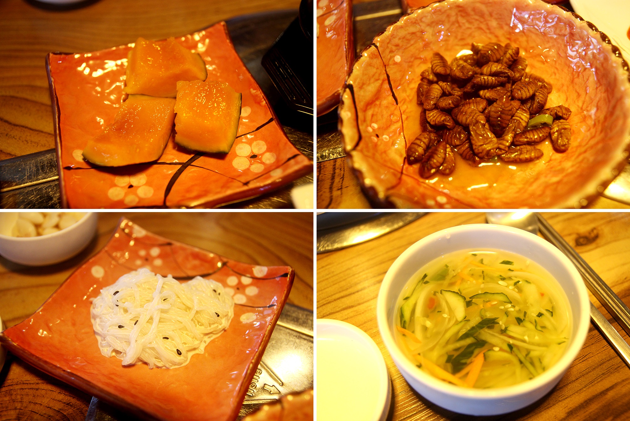 단호박찜 같은 경우는 숭이네 파파님께서 정말 맛있게 달 드셨구요! 저 번데기는 숭이가 대환장 하고 잘 먹었답니닷. 진짜 번데기는 사랑이에요- 넘나 마싯는것! 음 그 다음은 뭔가 우뭇가사리? 그런건데 감자로 만들어 진거라고 하더라고요. 그래서 끝맛에서 감자맛이 나는데..숭이는 모르겠어요! 숭이네 마마님과 파파님은 진짜 난다고! 맛있다고 하시더라구용~ 헤헿