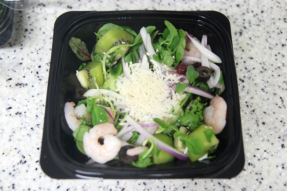 쉬림프샐러드 같은 경우는 유자 프렌치 드레싱과 함께 오는데요. 거기다가 파마산치즈도 듬뿍 얹어주시니, 맛도 영양도 칼로리도 최고일 것 같네요! 흠.. 숭이 생각에는 이 미스터네이처 샐러드도시락은 어떻게 해야 풀을 맛있게 먹을 수 있을까! 연구한게 아닐까 싶어요~ 구성이 너무 알차잖아요!!