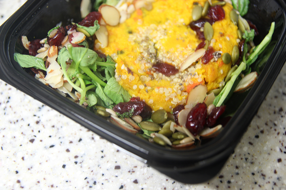그 외에도 다양한 견과류들과 함깨 세팅되어 있어요. 단호박은 식이섬유가 풍부하기 때문에 포만감도 빨리 느끼게 되고~ 뭔가 든든하게 한끼 먹은 듯한 느낌이 들게 합니다! 아, 요건 호박 고구마 드레싱과 함께 세팅된답니다.