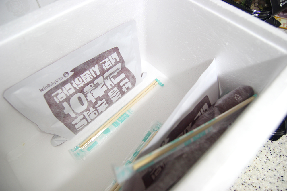 진짜 무슨 하루만에 온 것 같은데, 일단 샐러드 모두 빼내니까! 안쪽으로 상하지 않도록 아이스팩도 세팅 되어 있고! 젓가락도 가득 챙겨주셨더라구요.
