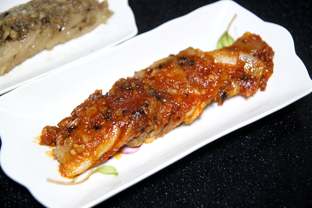 이건 마늘보쌈 이에요! 개인적으로 매콤한것 보다는 달달한걸 좋아하기 때문에 요게 괜춘하더라구요. 숭이네 파파님도 마늘보쌈을 더 맛있게드셨었어요! 매콤이는 뭔가 숭이네 언니 스타일이었습니다!