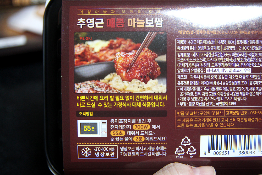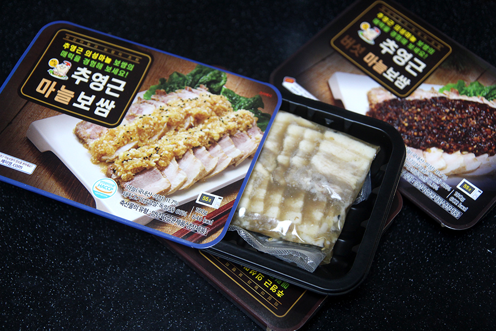 숭이가 오늘 보여드릴 아이는 요녀석들! 추영근 마늘보쌈이에요. 만들어 먹기는 또 얼마나 편한지~ 그냥 전자레인지만 있으면 밥 한끼 바로 뚝딱이에요! 진짜 오늘 같은날 아무것도 하기 싫은 날에 제격이죠!