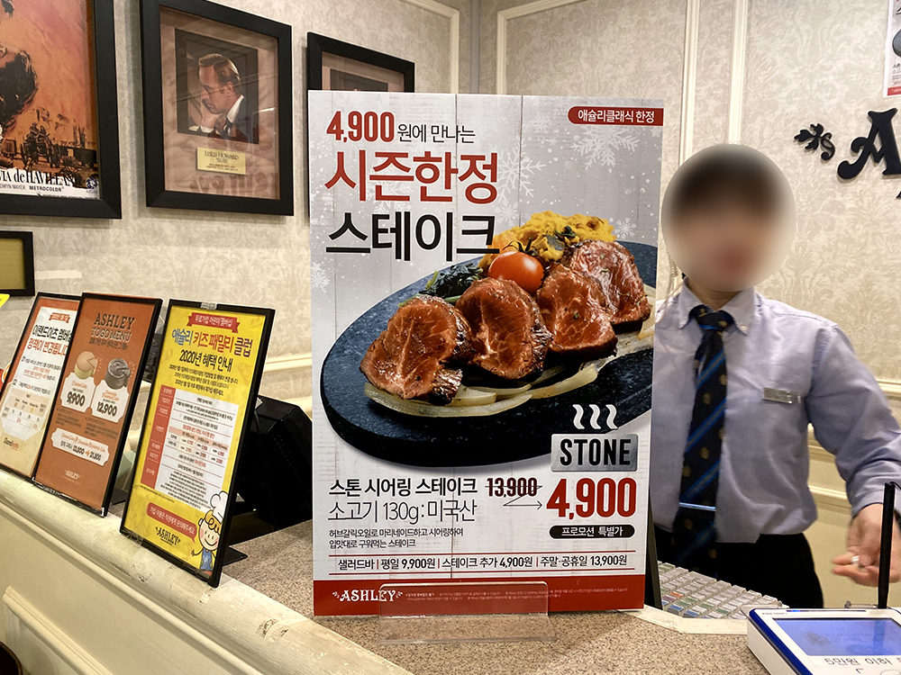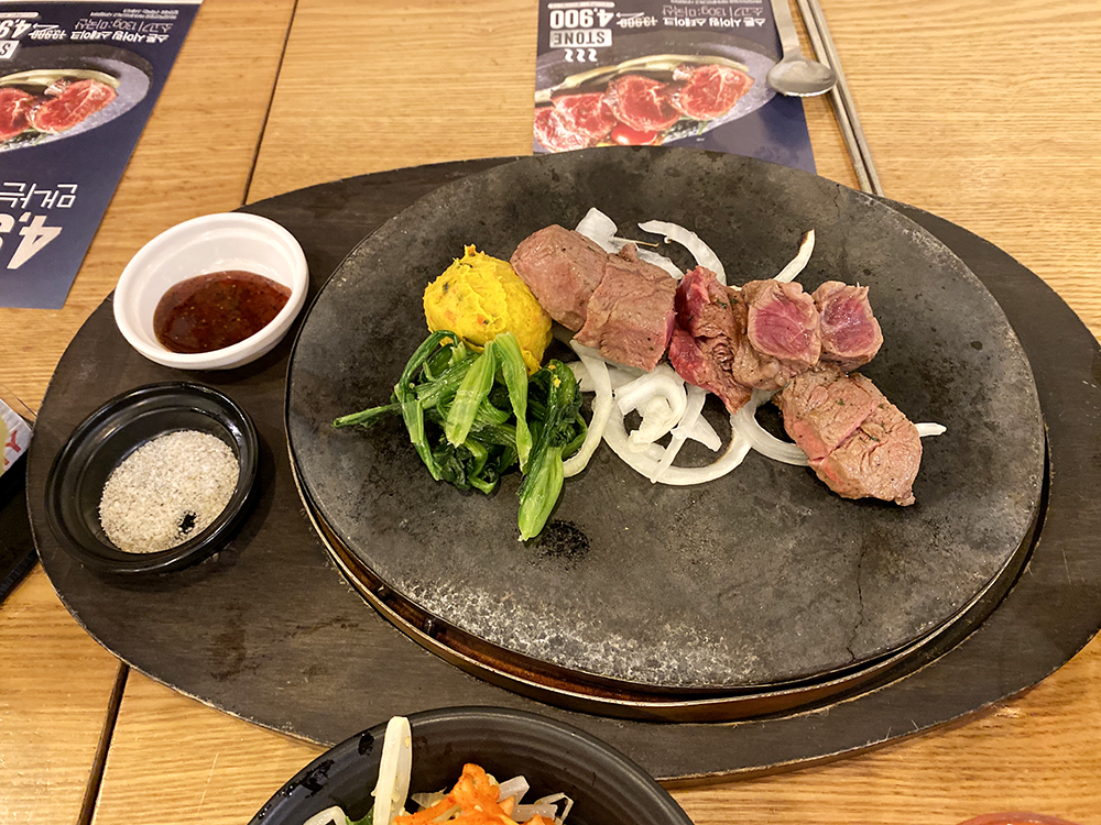 짜잔- 쿠폰북 챙겨서 드디어 입장! 아, 거기다가 또다른 희소식은 스테이크를 시즌한정으로 4,900원에 만날 수 있더가루교! 스톤 시어링 스테이크 원래 13,900원인데, 프로모션 특별가로 4,900원에 받으실 수 있답니닷! 저희도 요거 하나 주문했어요~ 숭이네 파파님 드시라구요!