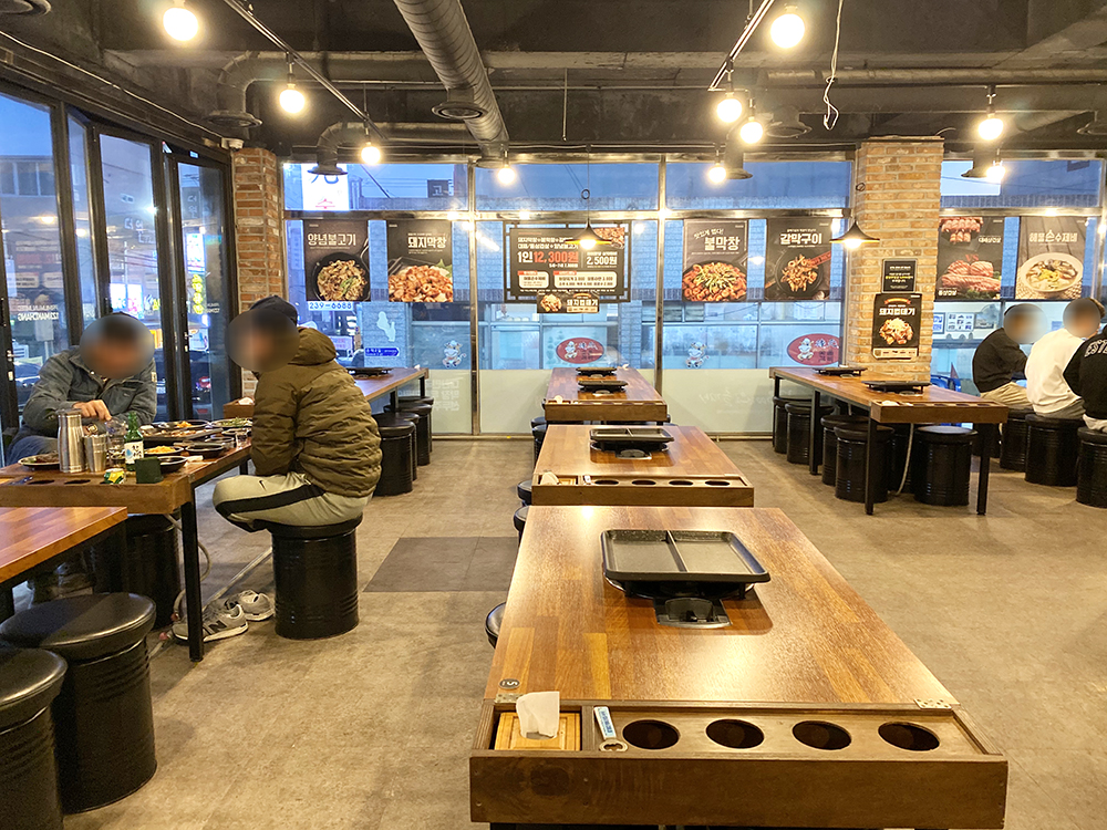 내부는 뭐 특유의 고기집과 비슷해요. 연기 빼는 통이 근접해있지는 않았는데..생각보다 연기가 막 많고 그렇지는 않더라구요?! 겨울에 찍은 거라.. 다들 두툼한 곳을 입고 있지만! 지금도 열심히 영업하는 곳입니다!
