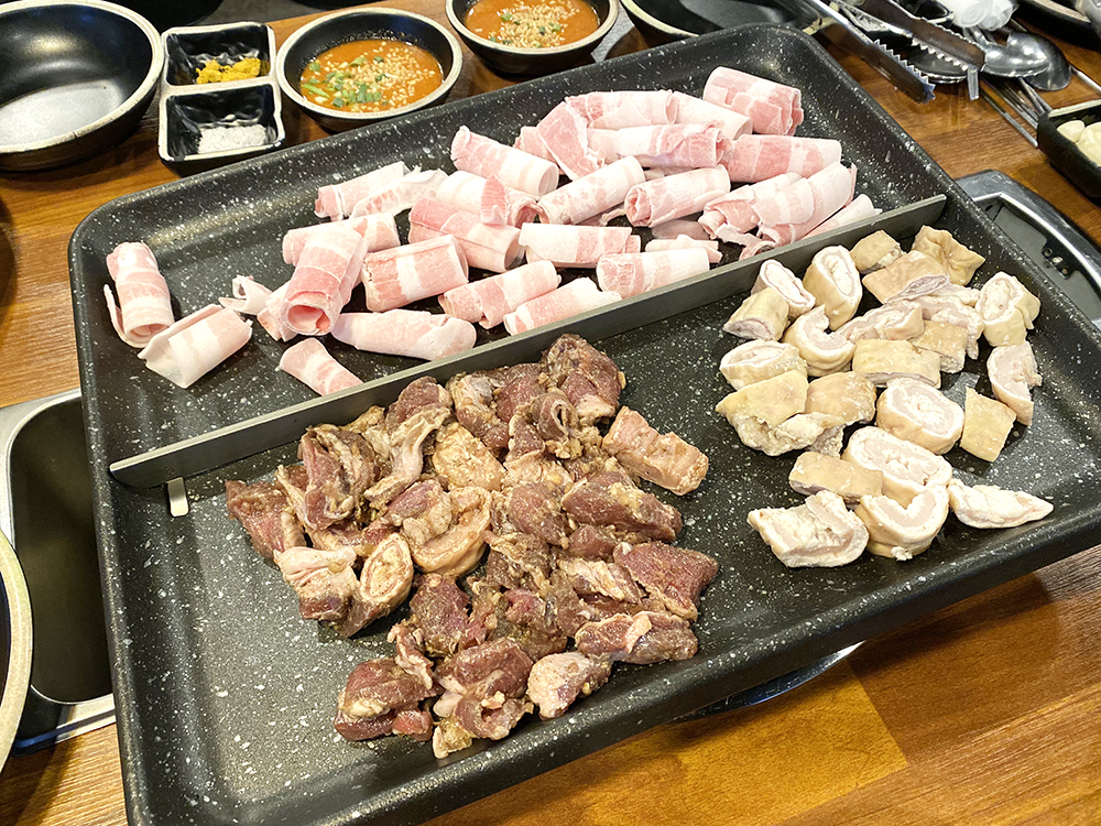짜잔- 이곳을 좋아하는 이유는 바로! 울산 무한리필 고기집 이기 때문이죠~ 12,300원의 가격에 돼지막창, 불막창, 갈막구이, 양념불고기, 통삼겹살, 대패삼겹살, 해물손수제비를 맛볼 수 있어요. 사실 저희도 다 먹어보지는 못했고! 가면 주로 먹는게 돼지막창, 갈막구이, 대패삼겹살이에요. 얘네는 진짜 베스트거든요. 괜히 울산 덕신 맛집이 아닙니다!