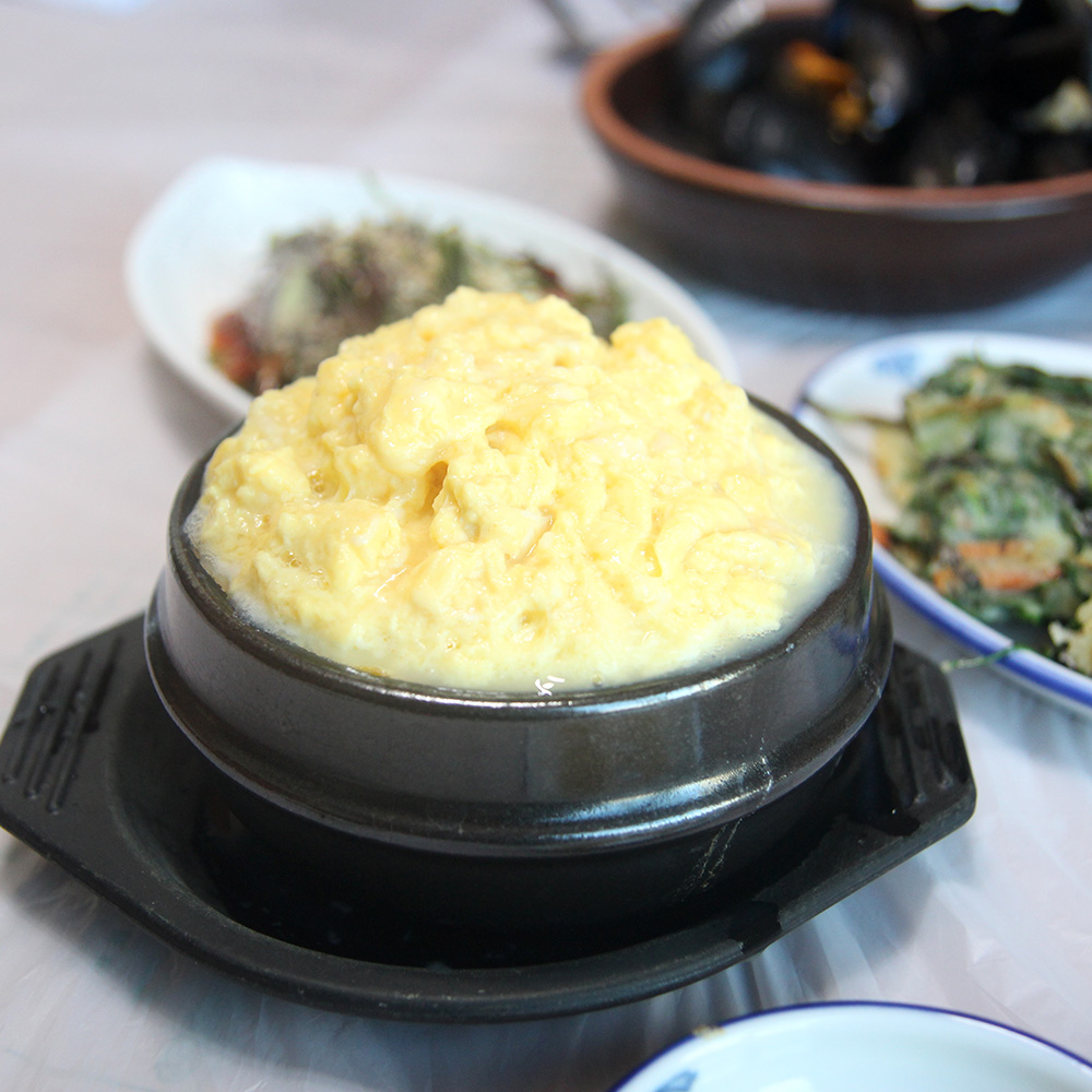 마마님도, 파파님도, 저도 정말 사랑해 마지 않는 계란찜입니다 :) 보글보글 끓는 상태에서 도착했는데요! 인심 좋은거 보이시나요?! 계란찜이 흘러넘치려고 해요~