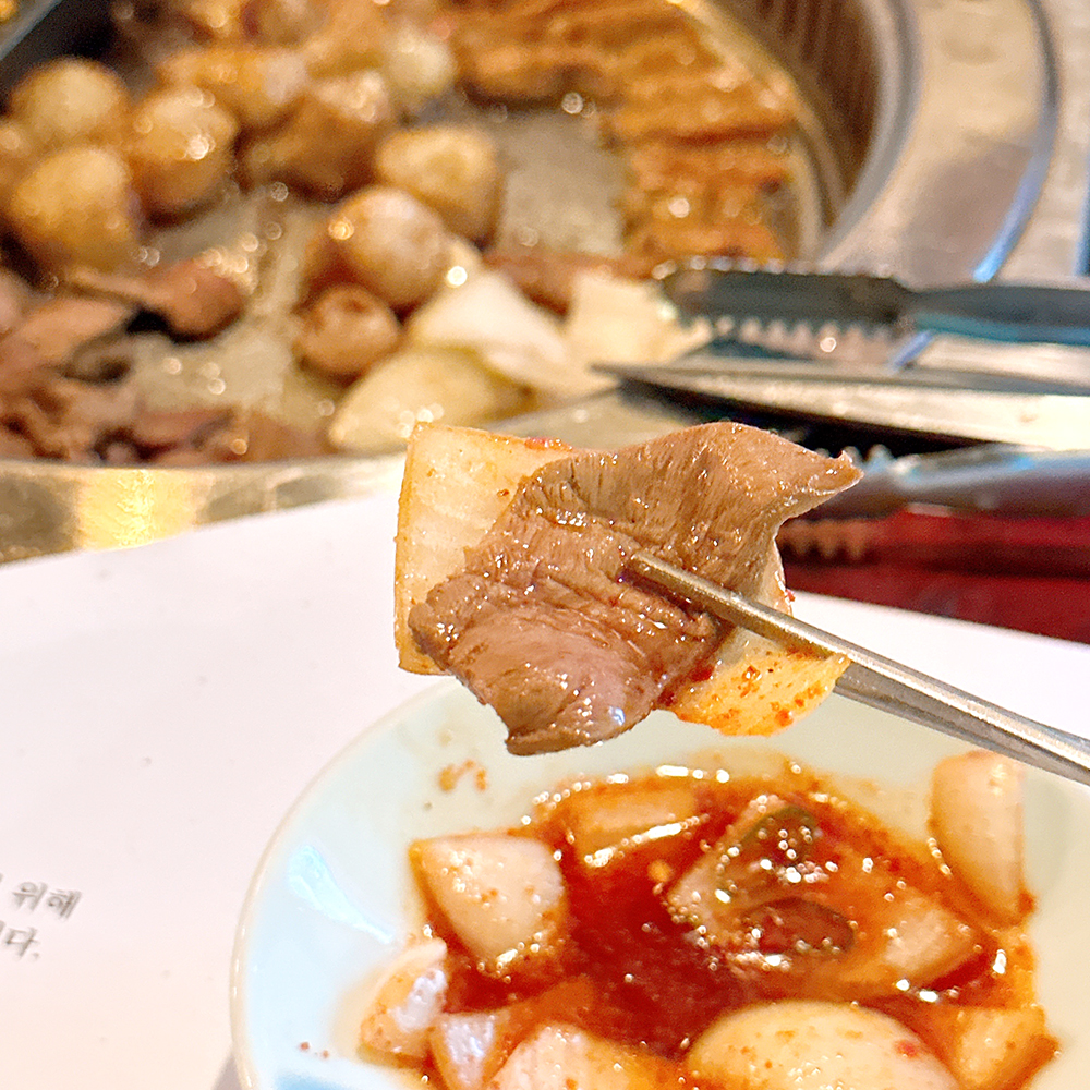 이게 아마 대창 같은데요. 제가 가장 맛있게 먹었던 고기 입니다! 양파절임소스가 은근히 맛있더라구요?! 뭔가 감칠맛 난다고 해야 할까요?!