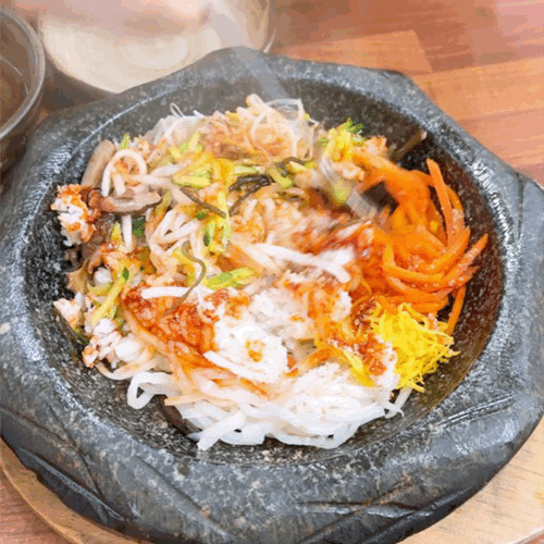 다른 것 보다 비빔밥이 돌판에 나왔다는게 너무 매력적이었어요! 돌판에 열이 가득 채워져 있어서 밥을 비빌 때 치이익~ 소리가 나는데 와..이거 군침 제대로 돌게 하더라구요!