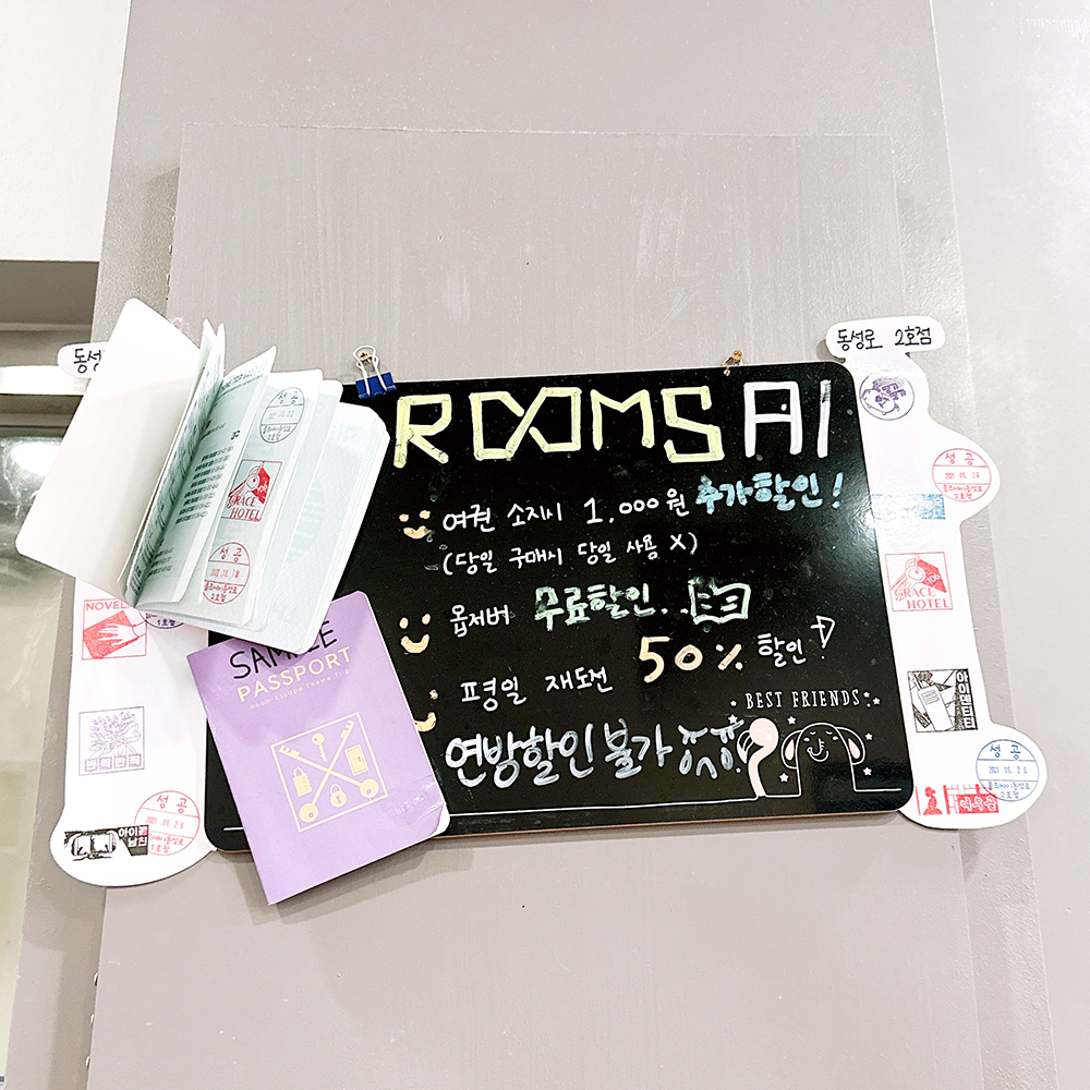 뒤늦게 알게 되었는데, 대구 동성로 방탈출카페가 꽤 많은 편이잖아요?! 여기에 여권제도를 접목시켰더라구요! 거기다가 부산까지도 연계되어 있어서, 이거 만들까..? 싶었었는데! 일단 보류 했습니다.