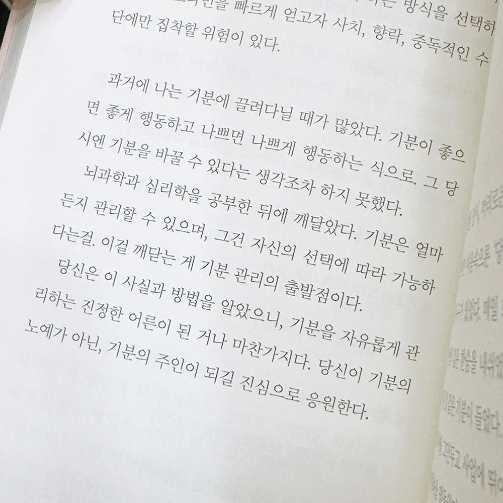 <기분은 얼마든지 관리할 수 있으며, 그건 자신의 선택에 따라 가능하다는 걸. 이걸 깨닫는 게 기분 관리의 출발점이다.>