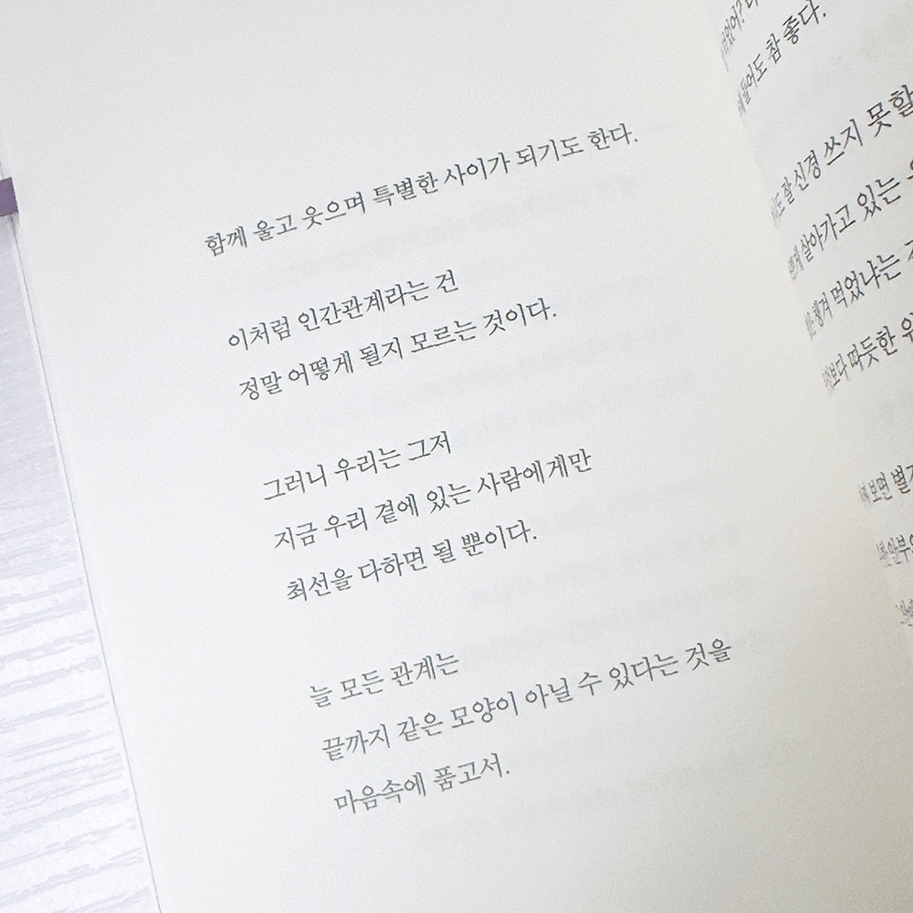이 책은 여러 작가님들이 공동 집필한 책인데, 2명의 작가분 글에서 존대와 반말이 섞여져 나오더라구요. 존대 부분에서 오히려 흐름이 깨져서 너무 아쉬웠습니다.