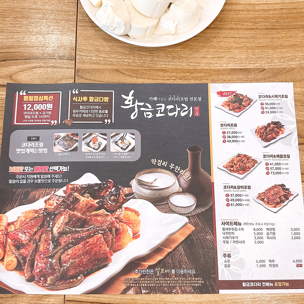 하단에 <평일 점심특선 코다리조림 1인 12,000원> 저거 보이시죠?! 진짜 가성비 좋게, 맛있게 맛볼 수 있어요. 저희 마마님 파파님이 삼산동 쪽 나가시면 항상 찾는 곳이랍니다. 주말은 점심특선 매력이 없어서 살짝 아쉽긴 하지만~ 저번에 저녁으로 가서 그냥 코다리&해물조림 먹어봤을 때도 맛있었어요! 적극 추천드립니닷.