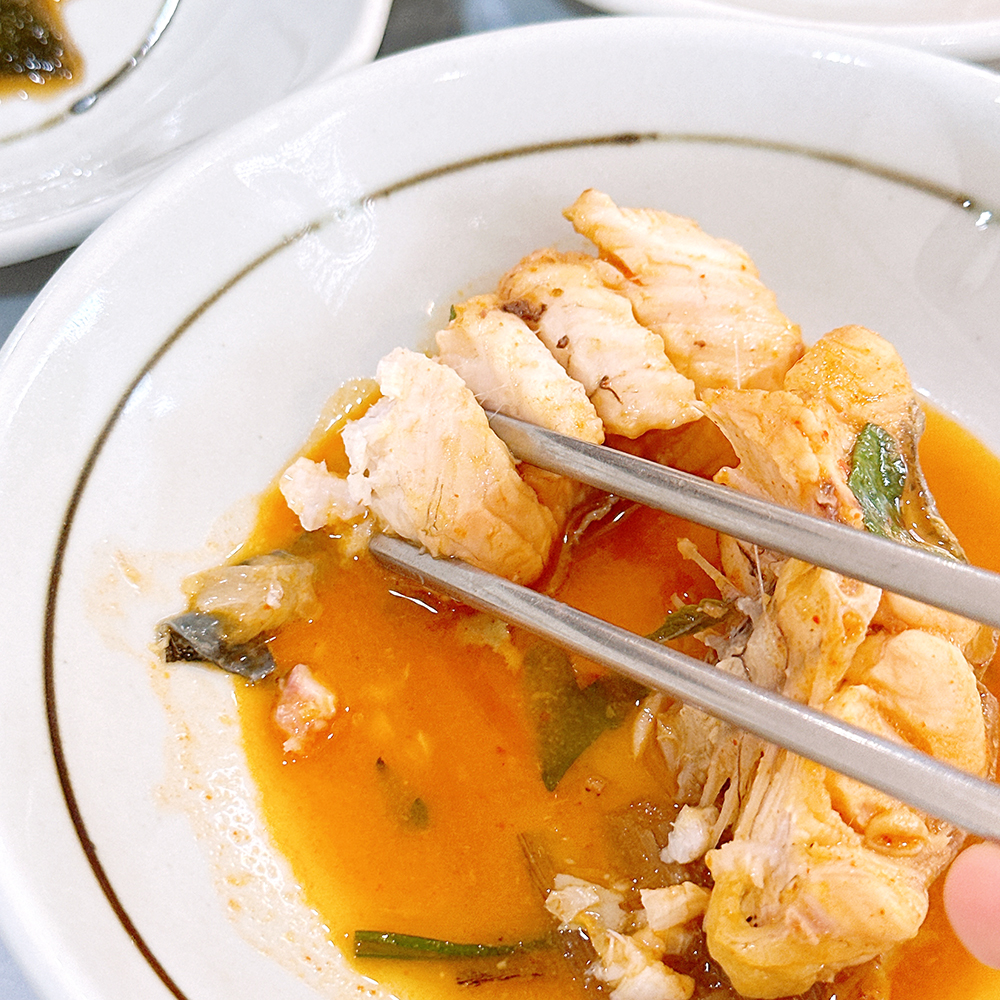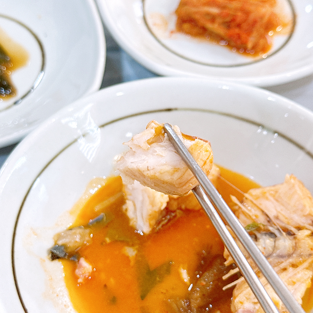 이거 살코기 튼실 한 거 보이시나요?! 사실 이런 살코기들이 엄청 많은 건 아니지만, 원래 매운탕이라는게 국물 맛으로 먹는 거 아니겠습니까?! 거기다가 전 원래 국물을 좋아하는지라- 만족했어요.