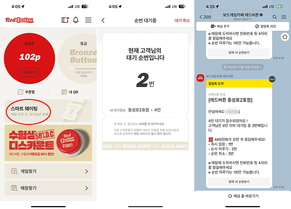 바로바로! 짜잔- 대구 동성로 룸카페 추천 장소, 보드카페 레드버튼의 어플.