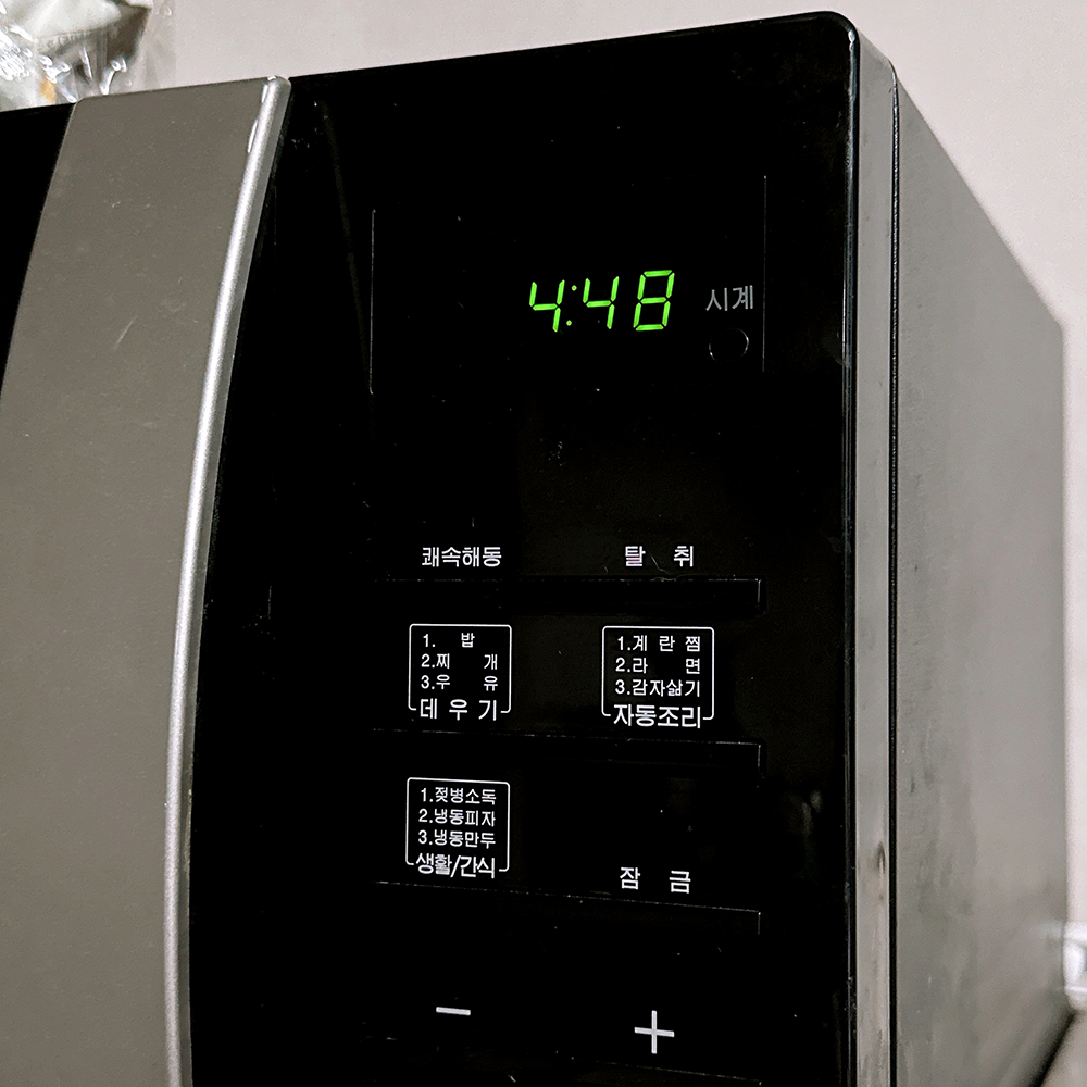 자- 그러면 후딱 만들어보겠습니다- 패키지 뒷쪽에 적혀있던 대로 비닐 끝부분을 살짝 오픈해 준 다음, 5분 전자레인지를 돌려 줬어요.