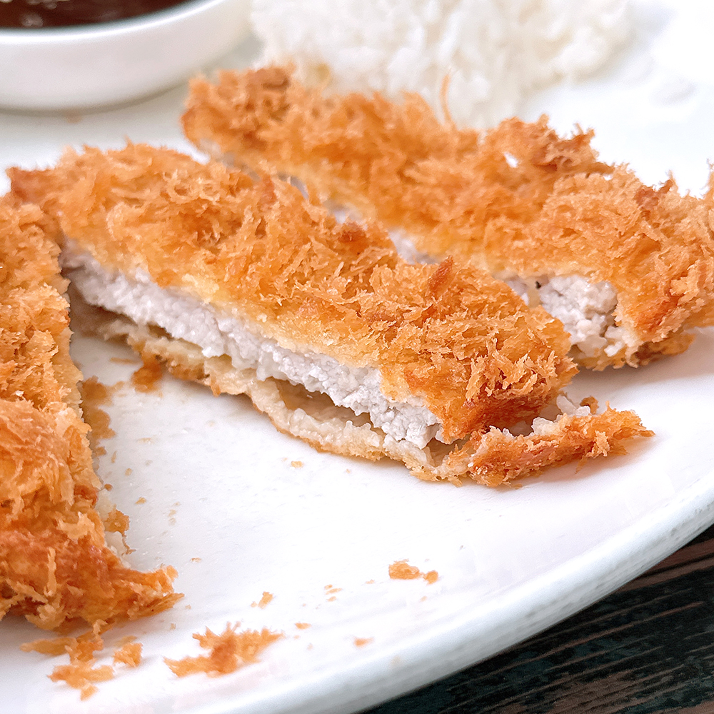 겉이 진짜 바삭하게 잘 튀겨졌어요! 설레이는 마음으로 썰어보니- 안쪽의 고기가 나름 두툼하고 촉촉한게 왠만한 돈까스 전문점 못지 않게 잘 세팅되서 나오더라구요!