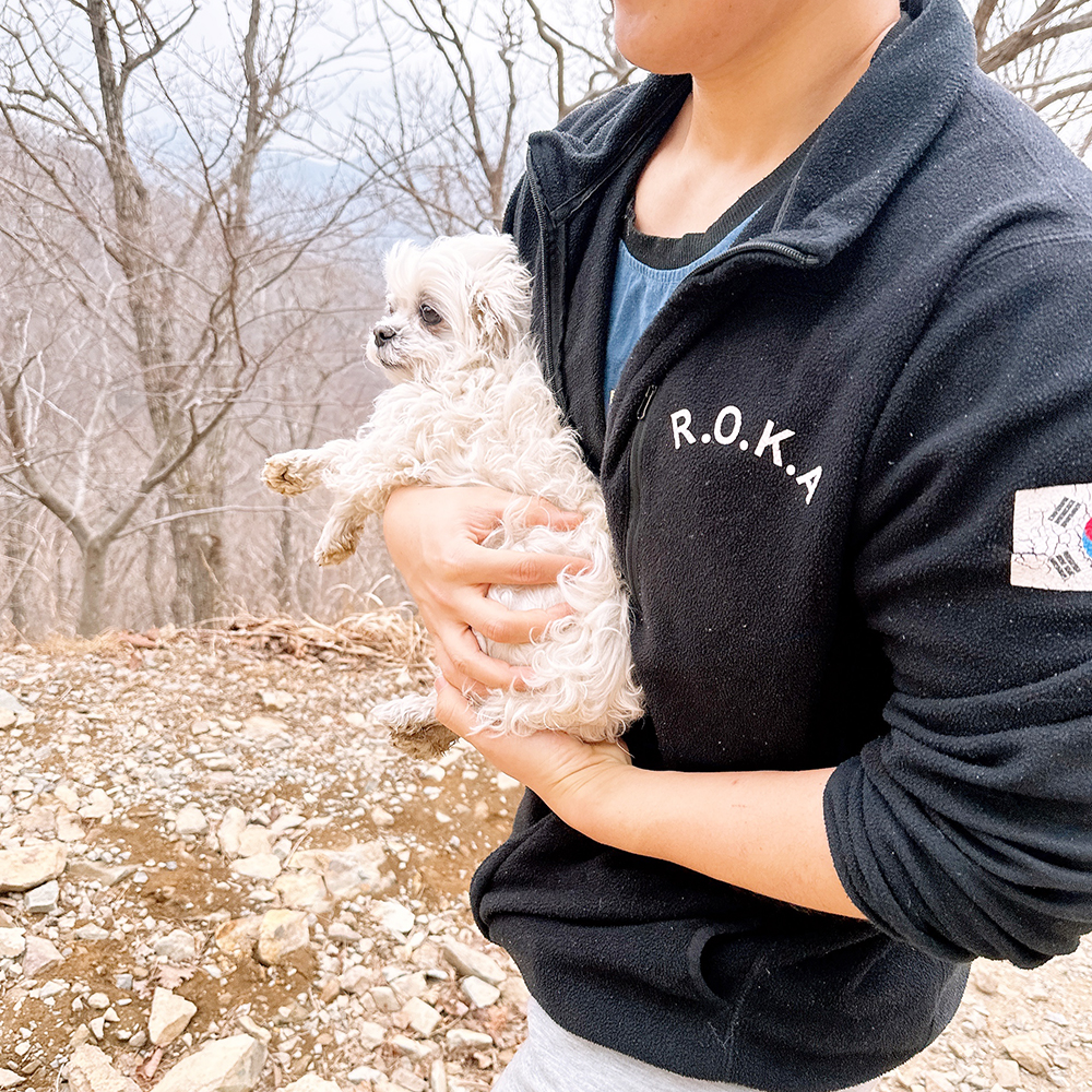 2.6kg의 룽지이지만, 등산하다보니 2.6kg도 꽤 무겁게 느껴지더라구요. 힘들어 해서 막둥이가 대신 안아 주기도 하고- 돌아가면서 안고 모셔갔어요! 평소 활동량 좋은 댕이들 추천드립니다!