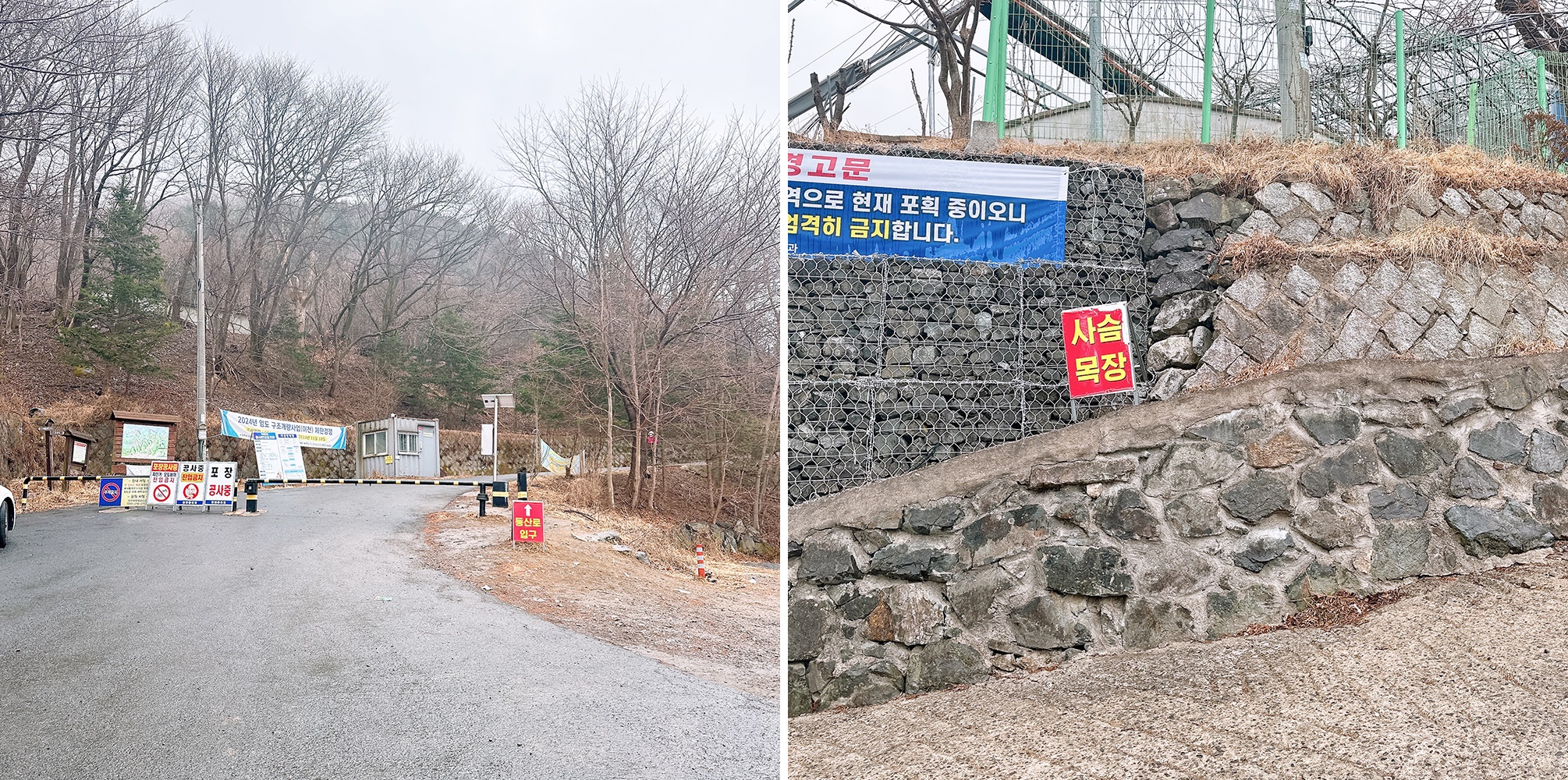 올라가는 길이 오른쪽 사진 찍어둔 곳과, 왼쪽으로 올라가면 <사슴농장> 팻말이 있는 곳, 2곳이 있는데요. 둘다 조금만 더 걸어가면 합류되기 때문에 어디로 올라가든 상관 없답니다.