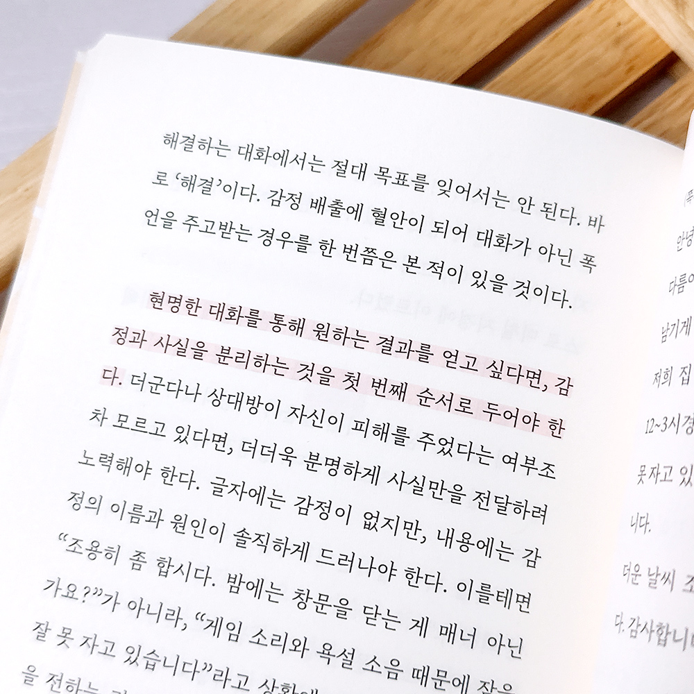 바로 '해결'이다. 현명한 대화를 통해 원하는 결과를 얻고 싶다면, 감정과 사실을 분리하는 것을 첫 번째 순서로 두어야 한다.
