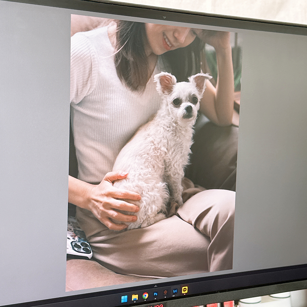 그 다음 골랐던 사진- 사실 작가님께서 픽 해주신 건데, 보정하고 나니까 마음에 쏙 들더라구요?! 다만 우리 현미 눈물자국을 예쁘게 지워주셔서 뭔가 살짝 현미 느낌이 사라지긴 했지만! 그래도 얼굴보면 현미라 마음에 들어용 :)