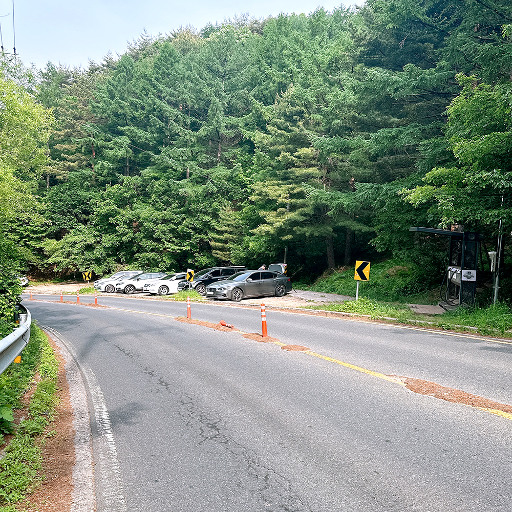 주차 같은 경우, 작년에도 올해도, 고헌산 최단코스 출입구 앞쪽의 간이 주차장에 했어요. 요기가 진짜 가깝거든요- 위로 더 올라가면 주차장이 하나 더 있다는 건 아는데, 조금이라도 덜 걷고 싶어서 항상 간이 주차장에 주차 했답니다. 한창 인기 많을 때는 이 곳도 꽉 찰 수 있으니, 주차가 꽉 찼으면 더 위로 올라가셔서 주차 하시면 된답니다.