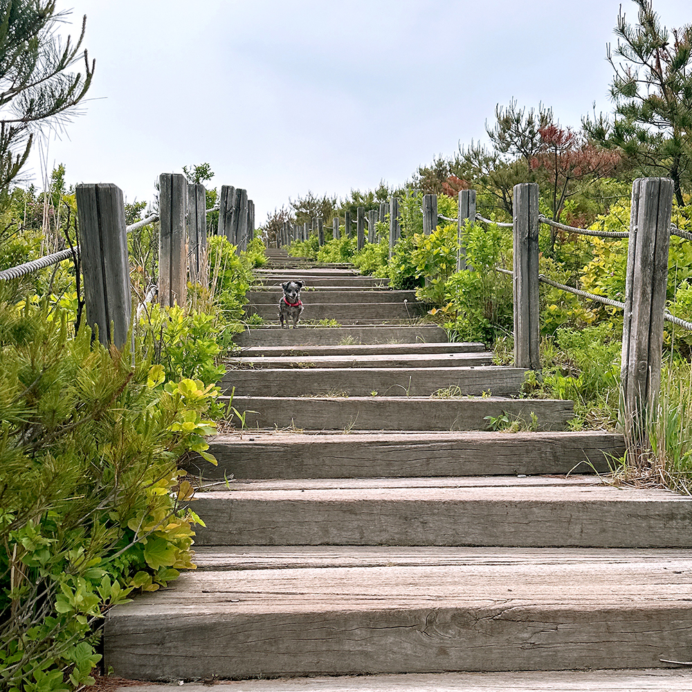 버뜨, 체력 넘치는 밥이는 신났어요! 얼마나 에너지가 많던지 뛰어 올라갔다가 다시 마마님과 제가 있는 곳 까지 달려 내려오고, 또 올라가고!