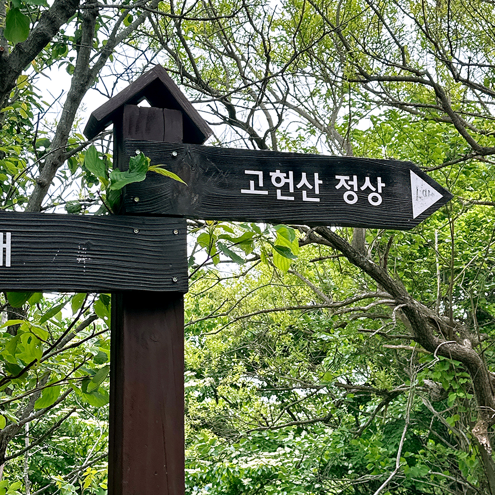 열심히 오르다 보니, 고헌산 정상을 향하는 이정표가 있었는데요- 사람이 수기로 적어놨던데, 저 km는 뭔가 신뢰가 안가더라구요. 그래서 그냥 꿋꿋하게 계속 올랐어요.