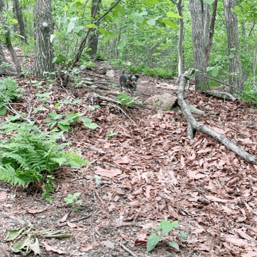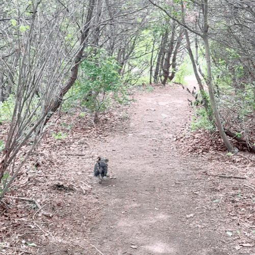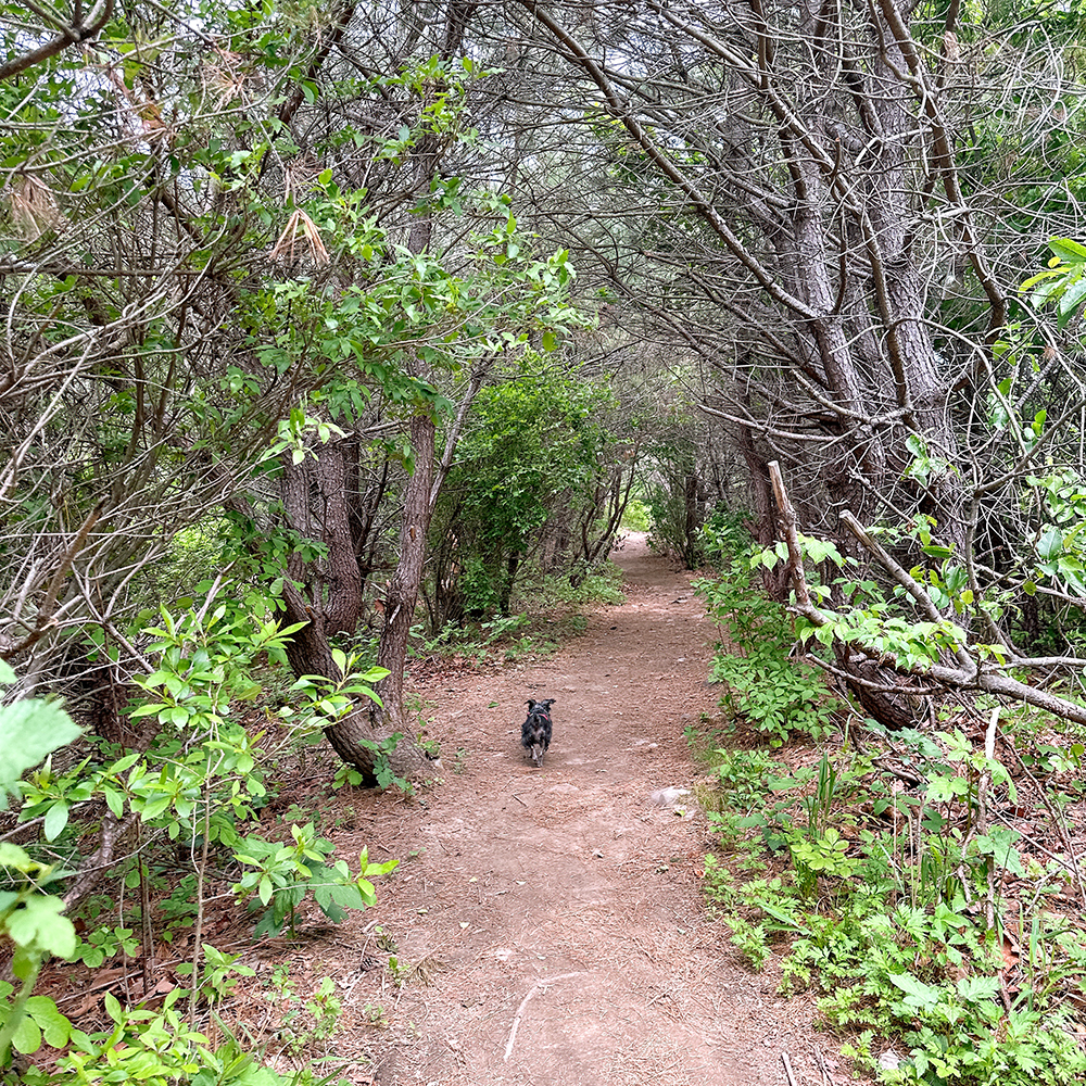 흙길과 푸른 공간을 걷는게 참 기분 좋다 싶었는데- 요기 기분 좋은 댕이 한마리 더있네요.