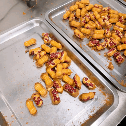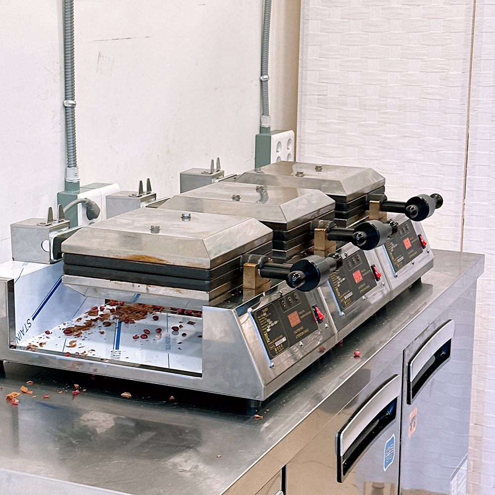 계속 기웃기웃 하니까, 들어와서 구경하셔도 된다길래! 포스팅 해도 되냐고 호다닥 찍어왔어요~ 땅콩과자 굽는 기계는 처음 봤는데, 요렇게 미리 땅콩을 세팅해 두고 그 위에 반죽을 넣어 구워 주셔요!