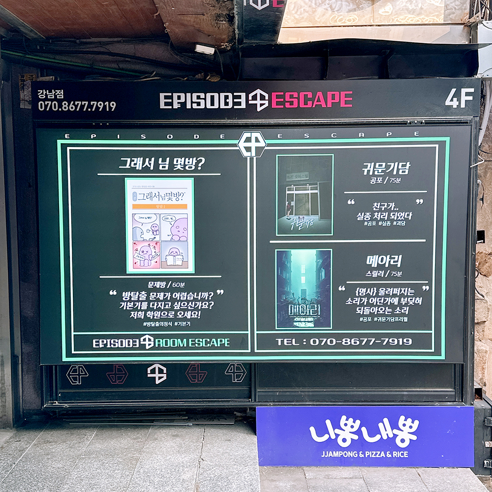 서울 강남 공포 방탈출 에피소드 강남점 위치 : 서울 강남구 역삼동 817 4층