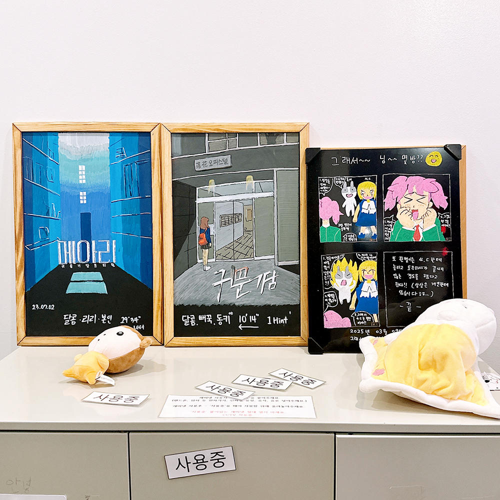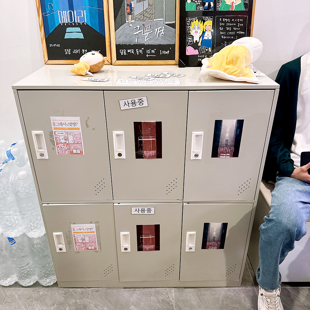 우선, 진행하기에 앞서 짐들은 모두 사물함에 보관해주세요! 생각보다 방탈출 카페 내부가 좁더라구요. 그래서 테마 대기 인원이 겹치면 살짝 난감쓰한 느낌..?!