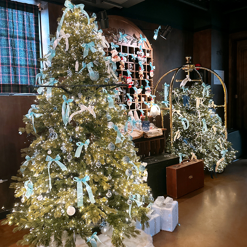 짜잔- 2층도 완전 크리스마스 분위기죠?! 부산 크리스마스 트리 카페 아니랄까봐 너무 예쁜 컨셉의 트리들이 곳곳에 세팅되어 있었어요. 1층에는 블루 리본 포인트의 블루 트리가 있는데! 요기도 포토존이라 참고해주세요-