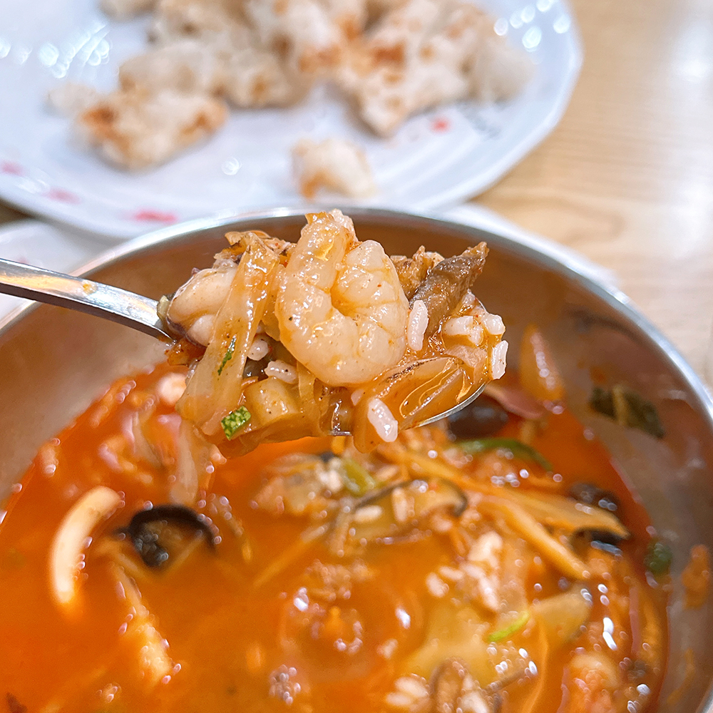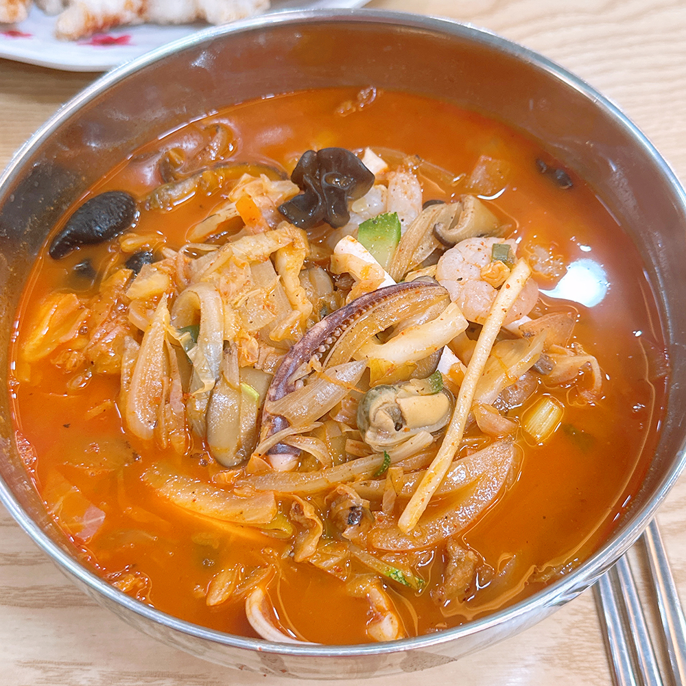 야채도 푸짐하게 들어가있고, 해물들도 군데군데 보였어요. 막 껍질째로 들어가있는 그런 해물은 아니었지만, 비린 맛 없이 신선하게 맛있었습니닷!