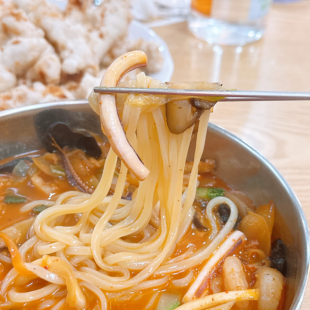 면요리는 다 좋아하지만, 면이 굵어질 수록 좋아하기 때문에 라면 면발보다 굵은 짬뽕 면발은 사랑이었어요! 기억이 미화된거 일 수도 있지만, 쫄깃 탱글하니 씹는 맛이 있었어요!