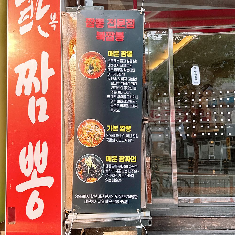 여하튼! 자주는 아니지만 막둥이 보러 곧잘 대전에 가곤 하는데요, 갈 때 마다 막둥이가 현지인 마인드로 대전 현지인 맛집을 소개해줘요. 그 중 하나가 이번에 방문한 복짬뽕 이라는 곳이었는데요- 대전 짬뽕 맛집 으로도 유명한, 기본적으로 매콤한 짬뽕을 판매하는 곳이랍니다!